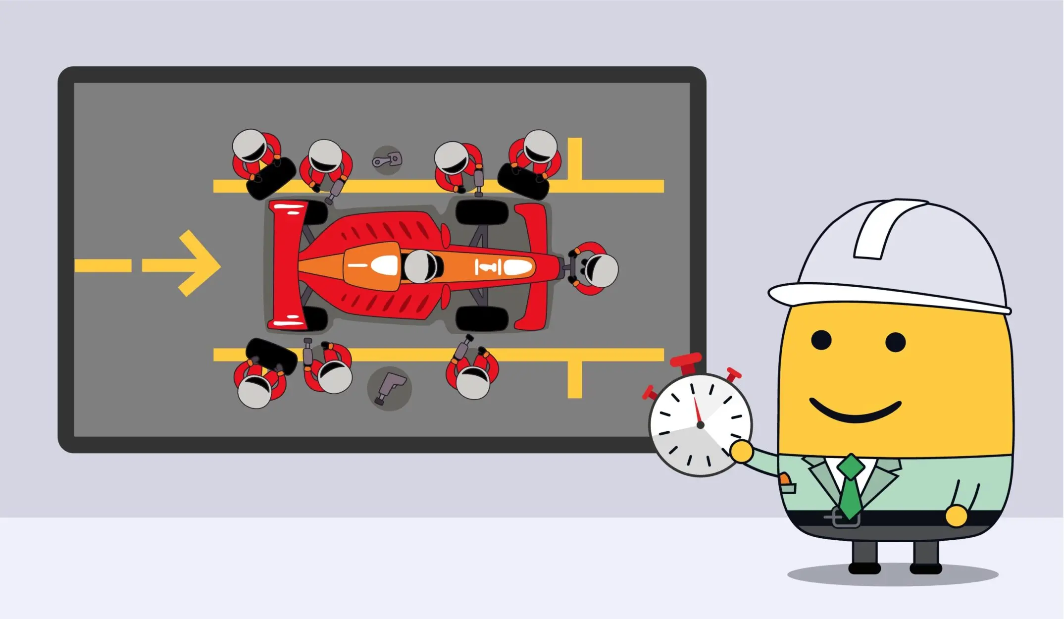 Think of SMED like a Formula 1 pit stop: every second the car is stationary is a second lost on the track. The goal is to have the crew, tools, and tires ready so the actual “stop” is as quick as possible.